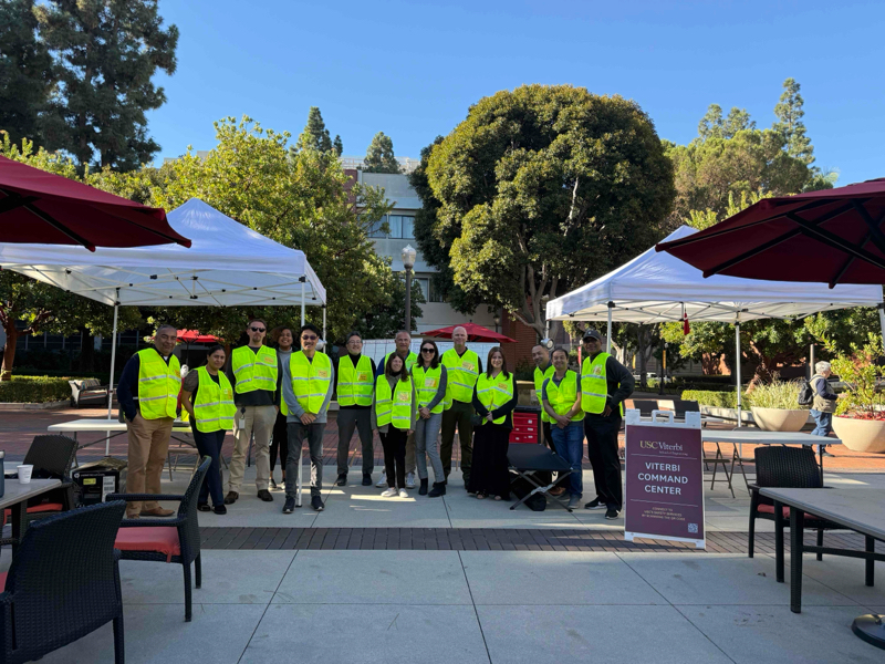 Department Operations Centers (DOCs) were activated to coordinate with the university’s Emergency Operations Center (EOC), simulating real-time communication and response during an earthquake. Highlights included damage assessments by Facilities Planning & Management and Environmental Health & Safety, emergency communication tests by the Department of Public Safety, and disaster radio drills by the USC Amateur Radio Team. The Campus Emergency Response Team (CERT) and critical service units also practiced emergency activation and continuity plans.